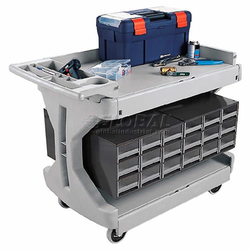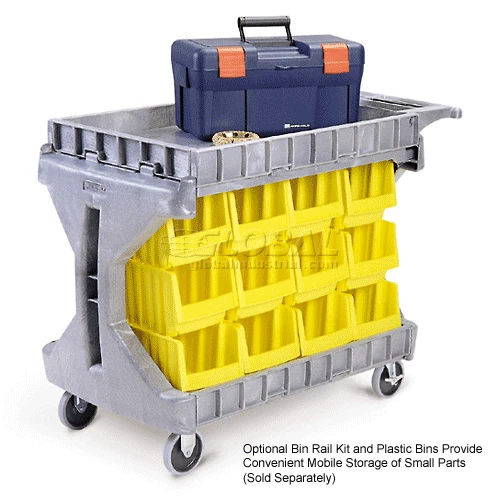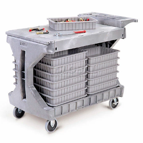Optional Bin Rail Kit includes 9 rails that allow use of AkroBins (sold separately in carton quantities only) for a mobile workstation.