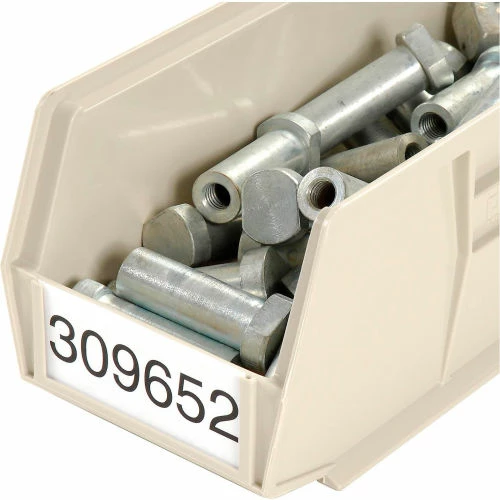 Strong industrial grade polymer bins hang or stack to accommodate your storage needs. Features include extra wide stacking ledge and finger grips for easy handling. Anti-slide stops and reinforcing ribs help prevent shifting and spreading when full. Large label slot provides quick inventory identification. Withstands 250°F temperatures. Sold in carton quantities.