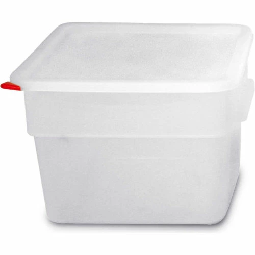 Food Storage Container, square, 12.6 quart, with side handles & lid, Colorclipยฎ coded, capacity indicators, stackable, dishwasher safe, polyethylene, translucent, HACCP compliant.