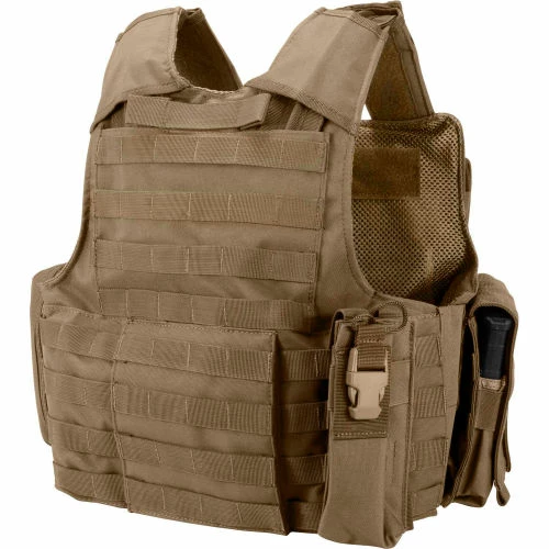 The Loaded Gear VX-300 Tactical Plate Carrier Vest (Green) from Barska features seven detachable pouches to keep ammo and tactical essentials organized and close at hand. It has internal sleeves with hold down straps for user-supplied body armor plates on the back and front of the vest. There is a total of 5 magazine pouches that can accommodate a standard 30 round AR-15/M-4 magazine. The VX-300 Tactical Vest is adjustable to fit most adults, and includes a front touch-fastener area for attaching ID patches. The VX-300 mesh webbing is designed for ventilation and durability, and allows for easy re-configurations. A reinforced rescue pull-handle is located on the upper back of vest, and an integrated MOLE system allows for the attachment of additional accessories.