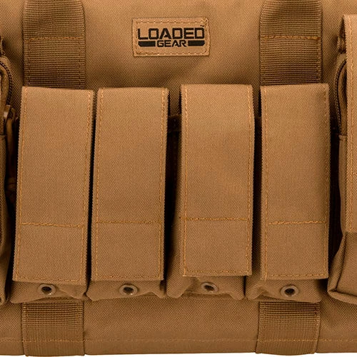 The Loaded Gear RX-50 16″ Tactical Pistol Bag (Dark Earth) is the perfect choice for transporting your handguns to the range. With storage for up to 2 handguns, 5 pouches for spare magazines, and 3 large pouches for additional accessories and cleaning supplies, the RX-50 has all you need for a trip to the range. The RX-50 conveniently stores 2 pistols and keeps them secure with bungee retaining straps and a touch fastener strap for the barrel. Opposite of the 2 handgun straps are 2 additional pouches and 1 mesh pocket for extra supplies and accessories. The back of the RX-50 is fitted with a MOLLE pattern webbing design that allows for the attachment of additional accessory pouches. Backed by One Year Limited Warranty.