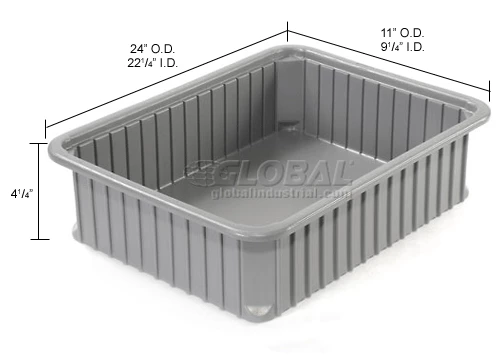 Cheapest 👍 Dandux Dividable Stackable Plastic Box 50P0224042 - 24"L x 11"W x 4-1/4"H, Gray 🤩 -Containers shop 772058 dim