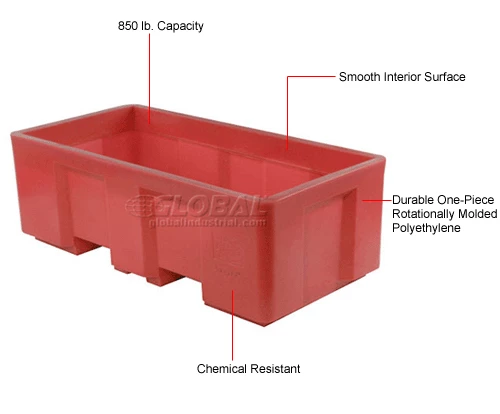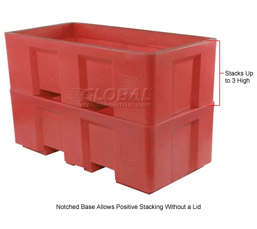Strong, durable and chemical resistant, our Skid Box features a 2-way fork lift entry with hand grips for manual lifting. The notched base provides positive stacking without a lid. Stacks up to 3 high.