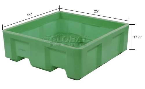 Strong, durable and chemical resistant, our Skid Box features a 2-way fork lift entry with hand grips for manual lifting. The notched base provides positive stacking without a lid. Stacks up to 3 high.