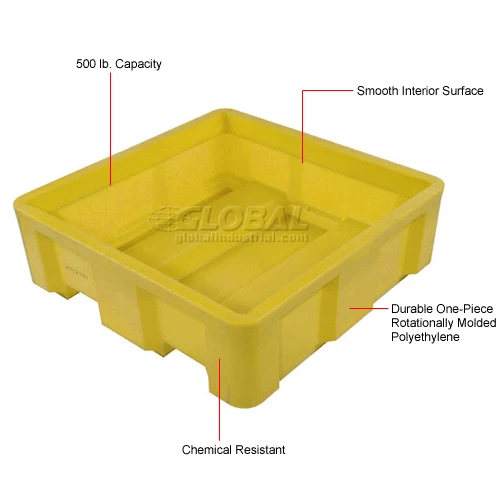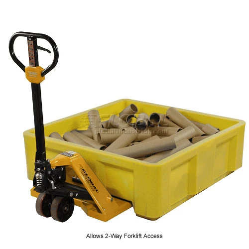 Strong, durable and chemical resistant, our Skid Box features a 2-way fork lift entry with hand grips for manual lifting. The notched base provides positive stacking without a lid. Stacks up to 3 high.