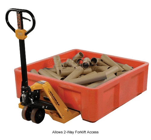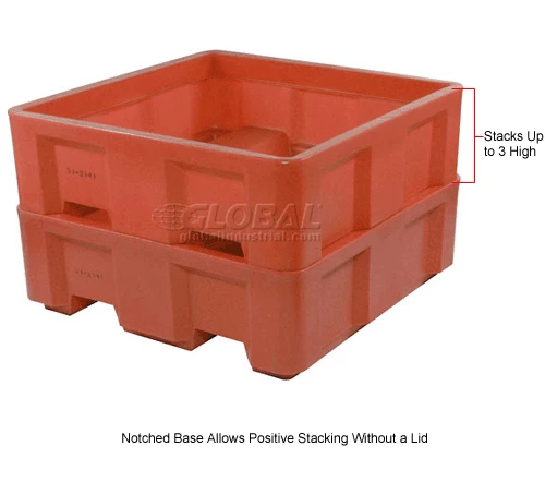 Strong, durable and chemical resistant, our Skid Box features a 2-way fork lift entry with hand grips for manual lifting. The notched base provides positive stacking without a lid. Stacks up to 3 high.