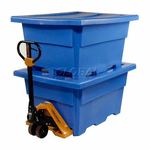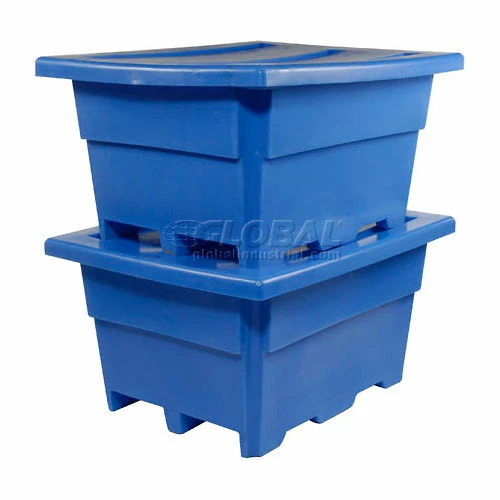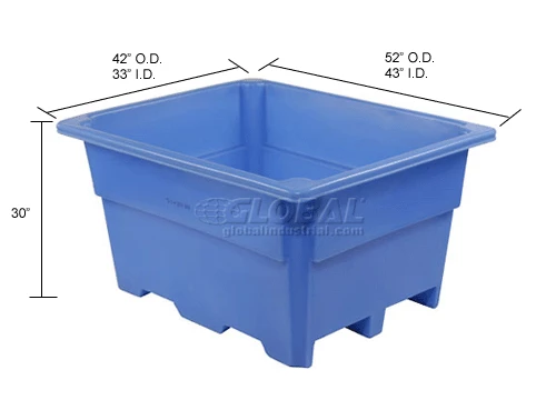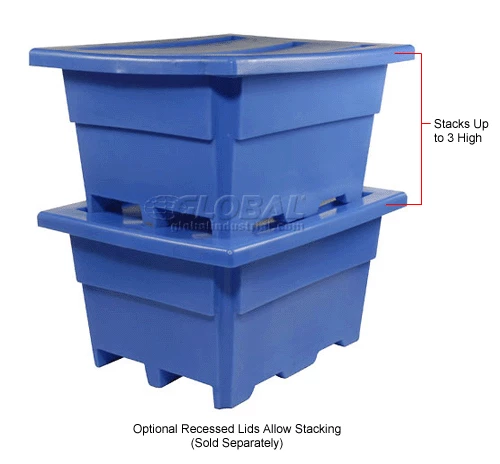 Pallet Container is constructed of strong and durable chemical resistant polyethylene. Allows you to stack three high with optional recessed lids. Nests for compact storage. 2 way forklift entry.