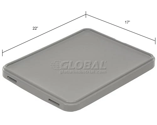 Box cover is made with gray plastic. Plastic cover easily snaps in place to help protect contents. For use with containers measuring 22″L x 17″W.