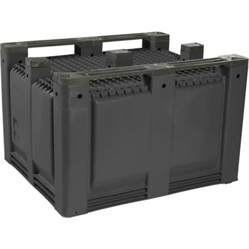 Ideal for agricultural, pharmaceutical, industrial and food service use, these high grade, USDA approved high density polyethylene structural foam containers resist rust, chemicals, rotting and warping, and withstand temperatures from 0°-140°F. 4-way fork entry. Bases can be used as pallets without sides. Stack 10 high with patented interlocking corners.