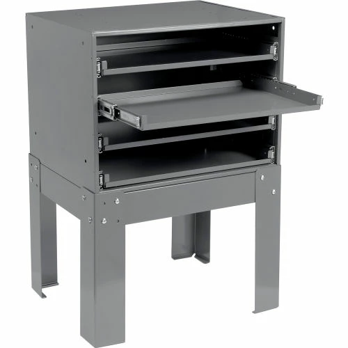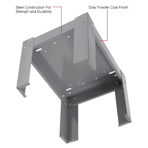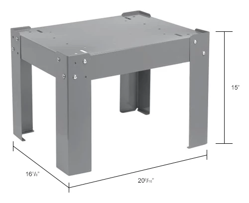 Sturdy all steel construction. Raises units 15 inches off the floor. Legs attach easily using fasteners provided. Durable gray powder coat finish.