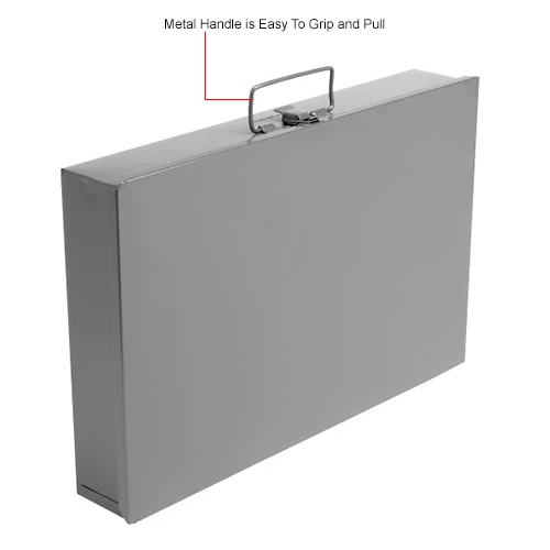 Steel Scoop Compartment Box (#111-95) with 20 compartment separate items to provide organized storage. The box is made with prime cold rolled steel for strength that lasts. Storage boxes include high impact styrene inserts to separate container into compartments. Each compartment has a scooped bottom for easy parts removal. Lid features full length piano hinges for rigidity. Positive locking pull-down catch keeps lid tightly closed to secure contents in compartment. Storage boxes measure 18″L x 12″W x 3″H overall. Gray powder coat finish.
