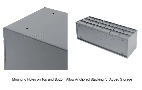 Storage cabinets feature balanced, no-drag drawers with newly designed pulls and extra heavy construction. Drawers have 2 dividers which may be adjusted on 1″ increments to provide desired size compartmentalization. Gray powder coat finish.