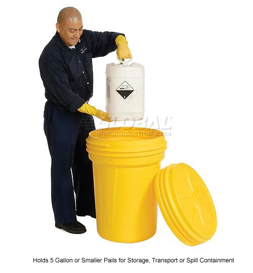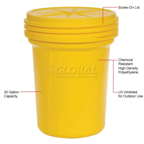 Constructed of chemical resistant high-density polyethylene. Lightweight, nestable and includes UV inhibitors. Ideal for storage, transportation, cleanup and spill containment. Drums incinerate completely. Lab pack holds 5 gal pails or smaller.