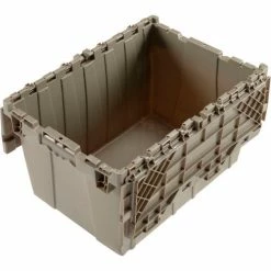 These sturdy plastic totes are designed to stack easily at 90ยฐ to permit easy access to contents. They also nest when empty to save space. FDA Compliant Resin & Colorant. Perfect for assembly, production and order picking. Rugged, molded polypropylene endures constant heavy use, won’t crack or rust and is easily cleaned. Holds up to 100 lbs. Measures 25-1/8″L X 16″W X 8-1/2″H. Sold in carton quantities of 6. Lids sold separately.
