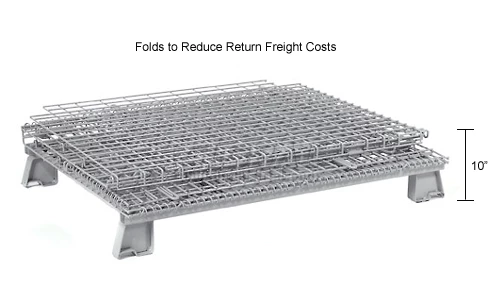 Open mesh construction provides excellent visibility, easy inventory control and eliminates dust and dirt build up. This one piece heavy-duty container features wire mesh arc-welded to a channel formed steel base. Sides and corners are heavily reinforced. Notched, positive stacking legs permit handling by forklift or pallet truck. Drop gate allows access when stacked. Durable powder coat finish resists rust and corrosion. Sets up in seconds.