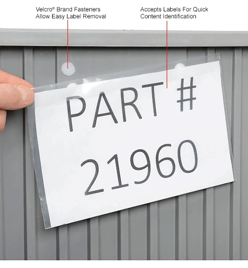 This clear label holder attaches securely with VELCRO®Brand fasteners to any size container allowing easy identification.