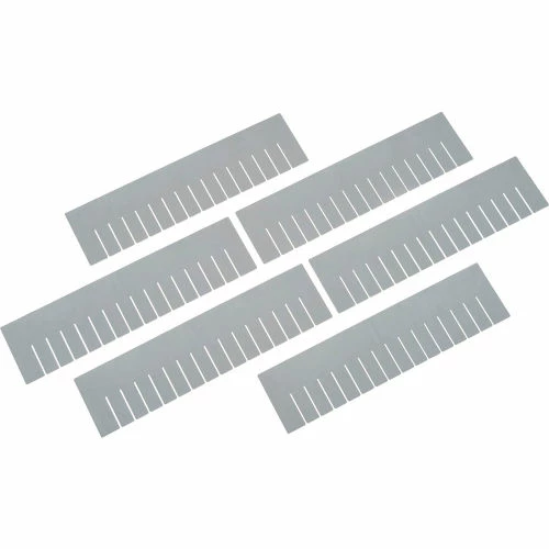 Durable, corrosion resistant plastic dividers help compartmentalize your grid boxes for efficient, organized storage. Dividers are slotted to accept cross interlocking with Width Dividers (sold separately). Dividers are gray and sold in packages of 6.
