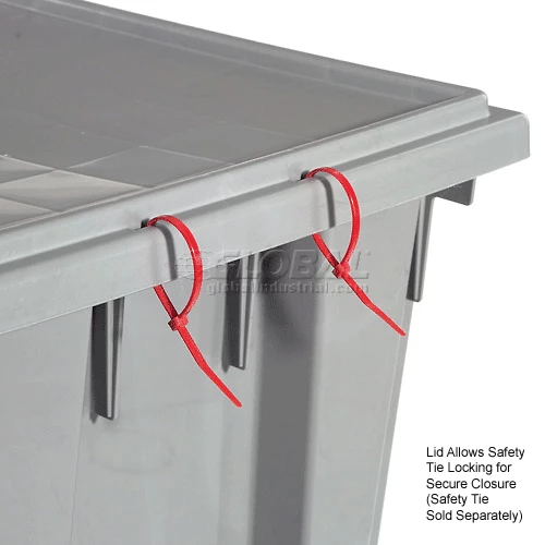 Lid protects contents and accepts security tie closure for added security. Made with high density polypropylene that complies with USDA and FDA regulations. Lid allows stacking for space savings. Withstands a range of -10°F to 250°F. Sold in carton quantities.