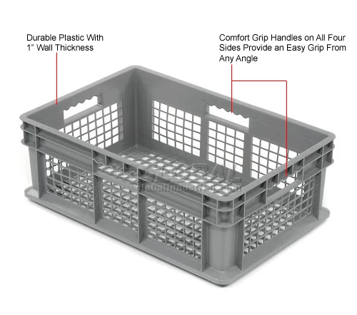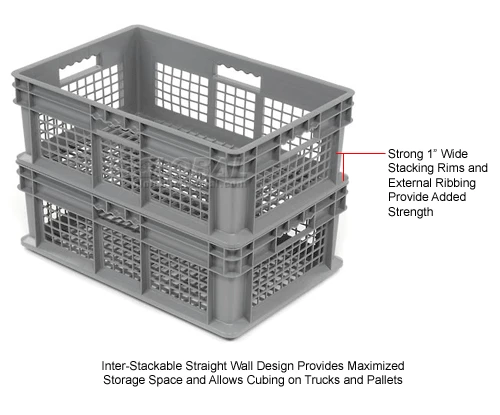 Create a complete storage system or use individually to keep a variety of components and inventory stored compactly. These heavy-duty cost effective, reusable containers are ideal for manufacturing, transporting and storing products. Inter-stackable, reinforced straight wall design allows you to maximize storage space by cubing in trucks and on pallets. Ergonomically designed containers feature comfortable grip hand holds on all four sides for quick and easy pick-up. Strong 1″ wide stacking rims and external ribbing provide added strength.