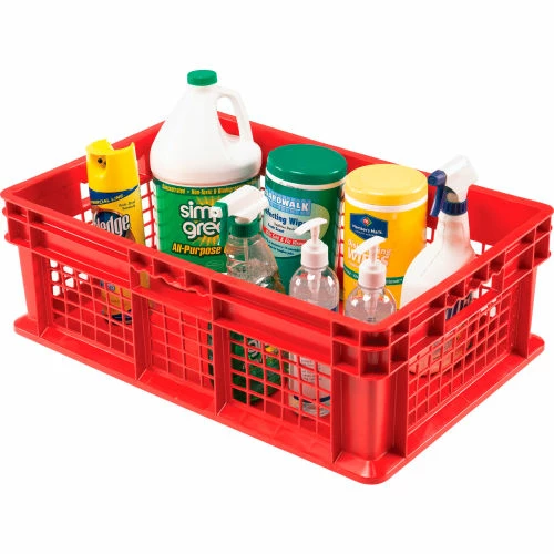 Deals 🎁 Global Industrial Mesh Straight Wall Container, Solid Base, 23-3/4"Lx15-3/4"Wx8-1/4"H, Red – Pkg Qty 4 👏