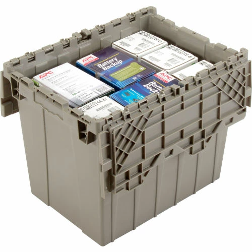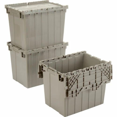 Hot Sale 👏 Global Industrial Plastic Attached Lid Shipping & Storage Container 21-7/8×15-1/4×17-1/4 Gray 👏