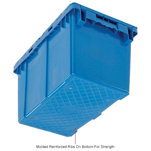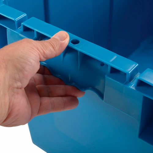 Safe, Secure, and Sustainable. The improved all plastic attached lid container leads the industry in design and proven performance. Taken out was the traditional metal hinge – replacing it with a safer and more durable all plastic hinge. This series of plastic shipping containers is the choice of much of the distribution industry. Manufactured from high grade-high density polyethylene plastic, the enhanced storage container is made to ship, store, and distribute goods and products in the toughest of environments. The all new plastic hinge design means there is no metal in the hinge of the container – making this container the safest and most sustainable in the market. Raised lip edges allow secure stacking. The attached lid container saves money too while allowing empty containers to nest inside each other when not in use. Molded grip handles have an integral hasp to accept cable ties for security. The Best Value plastic storage container offers increased safety and durability – all at a great value.