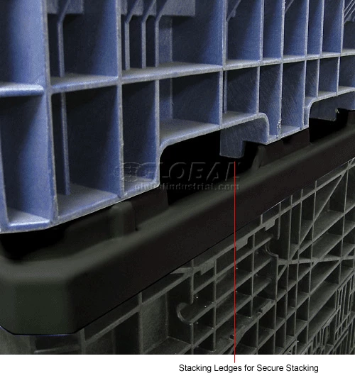 100% black polyethylene, resists rust, odors and moisture. 3:1 stacking ratio for money-saving return shipping.