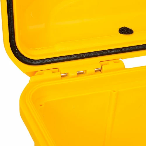 Features soft grip foldable Handle padlockable and 100% stainless steel hardware. High performance gasket with conditional lifetime guarantee. Automatic pressure release valve is crushproof. Molded-In Bezel System for dustproof. Designed for watertight. Powerclaw β’ latching system to allow integrated ld stay. Soft grip foldable handle to allow the case stackable. Lightweight NK-7 β’ resin meets airline carry-on regulations. Certifications: ATA 300 (Impact Test) ASTM D4169 (Falling Rain-Vibration-Drop Tests) Mil-STD-810F (Immersion Test) IP 67 (Ingress Protection Tests-Dust and Immersion). Lid Depth: 1-3/8. Max Bouyancy: 17 Lbs