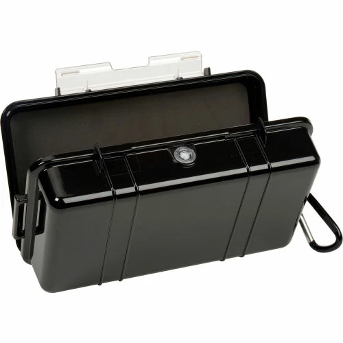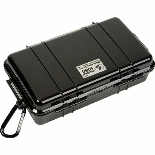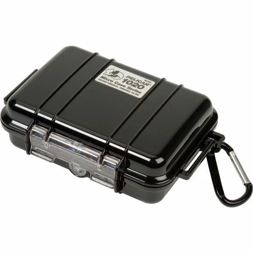 Portable protective case is made of polycarbonate structure for long lasting durability. Waterproof and crushproof micro case provides secure protected storage of small electronics, cell phones, photographic camera, radio and valuable small items.