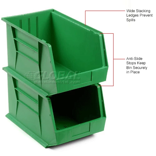 Promo 🔥 Plastic Stack & Hang Bin, 11"W x 16"D x 8"H, Green – Pkg Qty 4 🔥