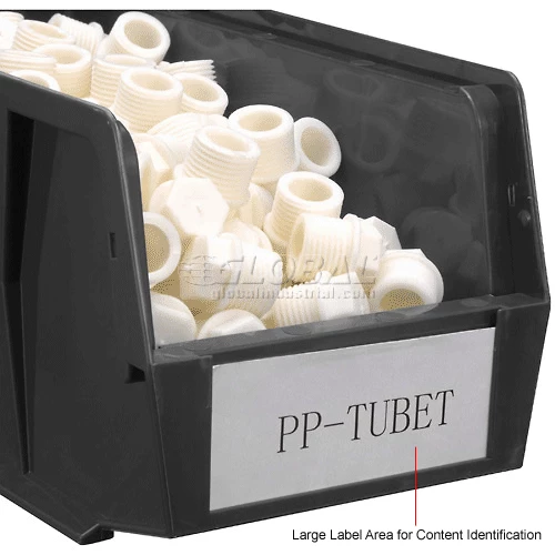 Reinforced walls add strength and rigidity and wide top ledge permits stable, higher stacking. Constructed of water and corrosion proof polypropylene, they withstand freezers and autoclaves from -40ยฐF to 250ยฐF. FDA Compliant Resin & Colorant. Includes a full-width hanger lip for use with louvers below. Anti-slide stop prevents shifting when stacked. Slotted label holders allow easy identification of contents. Stacking bins are available in Beige, Black, Blue, Green, Red or Yellow.