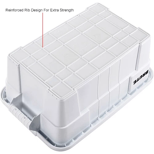 Reinforced ribbed bottom offers extra support for these RUBBERMAID BRUTE Totes. Polyethylene totes include Mark-It-Fresh date control panel and durable snap-tight lid. Stackable. Includes lid. NSF certified. Order in quantities of 6, priced each.