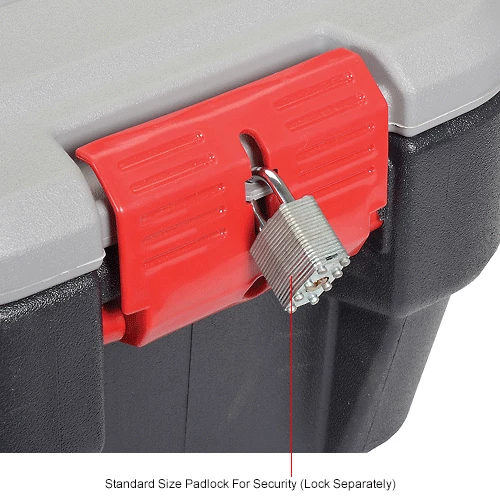 The ActionPacker™’s rugged construction makes it tough. Features tough, lockable latches (lock sold separately) This Rubbermaid® (Rubbermaid) ActionPacker™® storage container is made to take whatever you throw at it. Plus, you can use a bungee cord to secure the container (bungee cord not included). Outside bottom dimensions are 10-1/2″ x 14-1/2″. Price per each container, sold in carton qty.