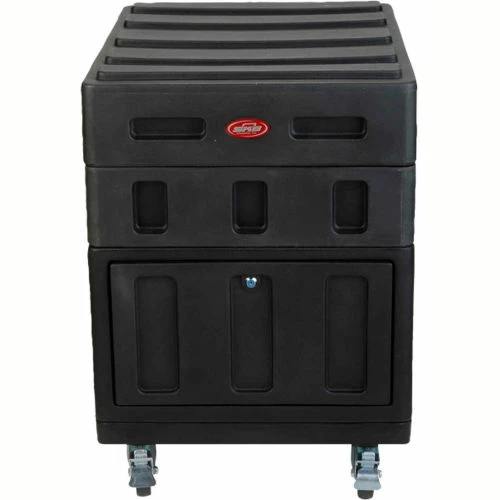 The SKB-R1400 Gig Safe is a part of a multiple section rolling rackmount system that will fit in the back of your car. Featuring a 14U+ top rackmount that will accommodate deeper analog and digital mixers, and a cover designed to fit over installed XLR cable connectors (top to rear mounted).The SKB-R1400 Gig Safe will attach to the SKB19-REX6 Expander case and the SKB-3224 Rotomolded GigDolly to give the same convenience and rack spaces as the SKB19-R1406 Mighty GigRig – only in multiple sections for transporting. 14U rack for deeper rackmount mixers