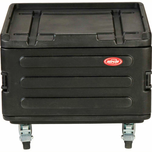 The 1SKB-R1906 was designed to add expandability to the 1SKB-R102, 1SKB-R104, 1SKB-R106 and 1SKB19-R1208 as well as the 1SKB19-R1006(V) and the 1SKB19-R1010(V). The 1SKB-R1906 can even stack on itself (remove the casters from the top one before stacking). There is a 1″ border around the top of the case (to help hold whatever is on top, in place). So the actual depth (height) is 16″ and if you include the wheels, it’s 21″ (20″ from the bottom of the wheels to the top mounting surface)