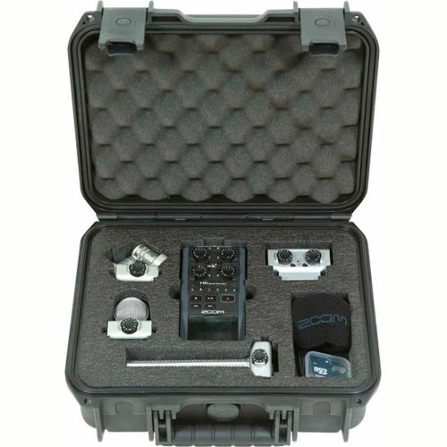 This military-standard waterproof hard case was specifically designed for the Zoom H6 recorders. The interior is custom cut high quality PE foam that includes space for the ultimate Zoom H6 recording setup. This includes pockets for the recorder, XYH-6 X/Y mic capsule, MSH-6 MS mic capsule, SGH-6 Shotgun mic capsule, EXH-6 Dual XLR/TRS Combo capsule, windscreen, memory cards, cables, and additional accessories. Not only does the SKB Zoom H6B case provide the ultimate protection for the recorder, it is backed by SKB’s unsurpassed Lifetime Warranty.