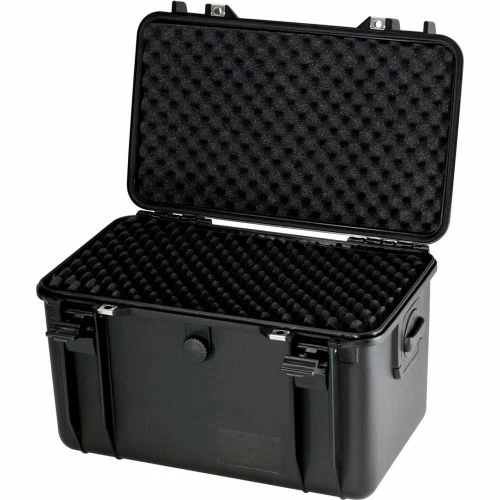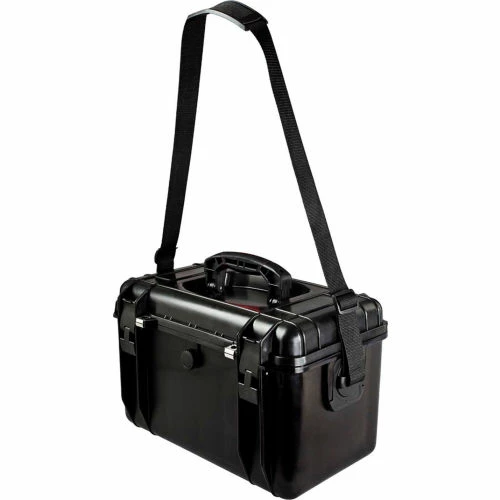 The case is made of rugged molded polypropylene and features a heavy-duty handle, easy open latches, pressure release valve, two metal-reinforced padlock slots, interior foam and a handy shoulder strap. The practical size of the case makes it perfect for camera equipment, tools, survival supplies or anything else requiring superior protection or safe storage and transport, and the shoulder strap makes it easy to carry.